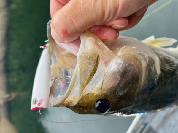 ポッパーのモゴットでナイスバスが釣れて