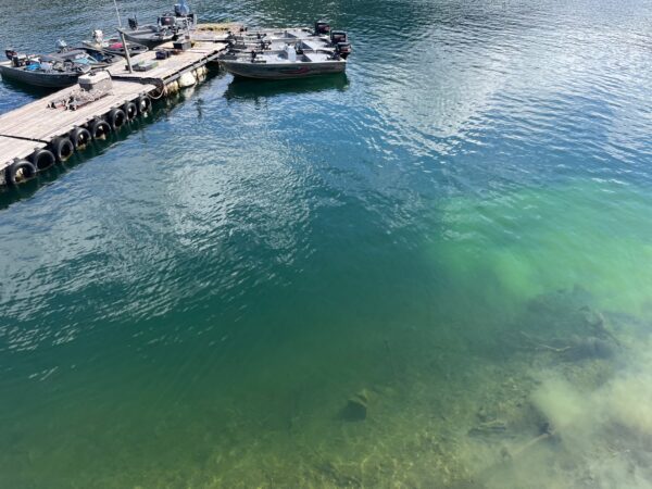 最下流ダムサイトのブイ際で