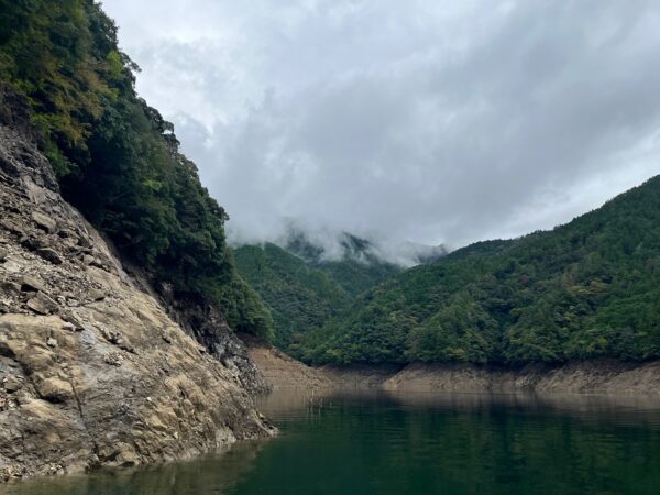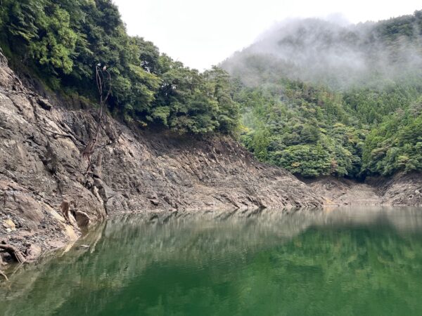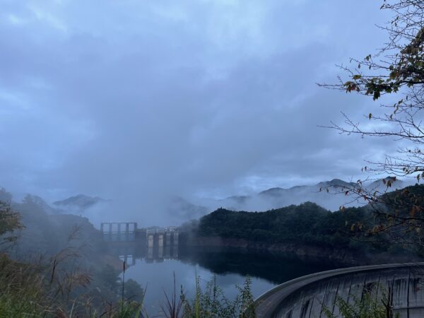池原ダムに少し霧がかかっていて