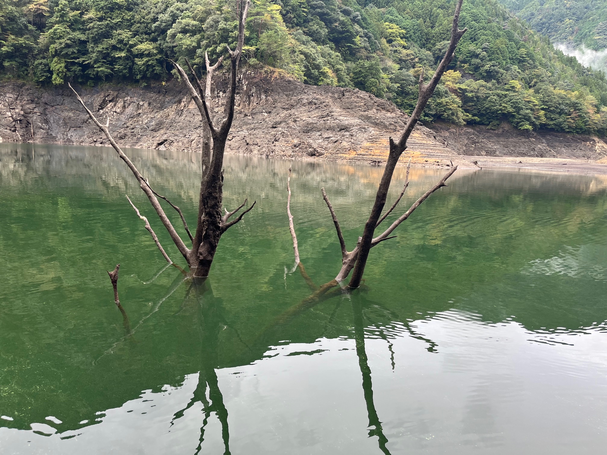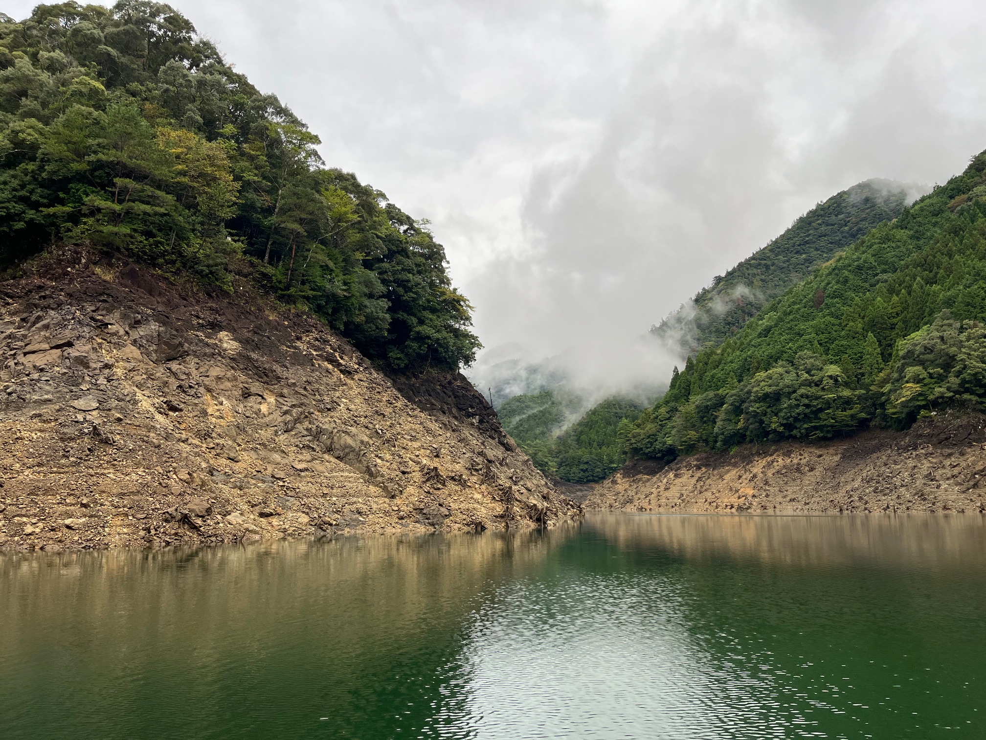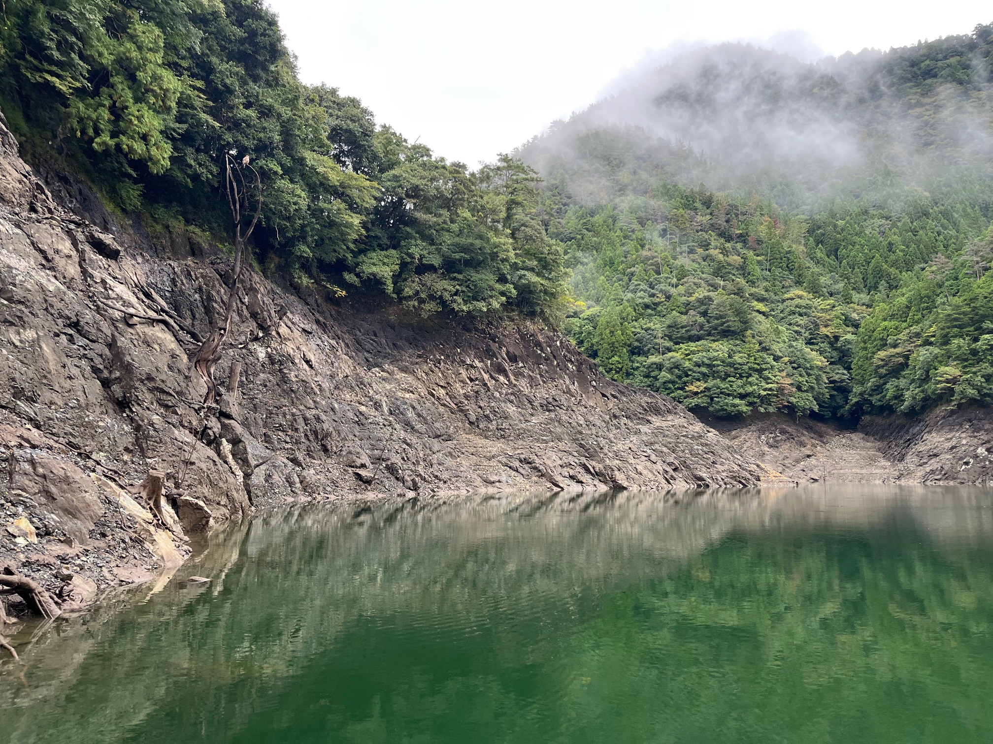 池原ダムに少し霧がかかっていて