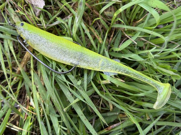 ドランクレイジー スローシャイナー5.8インチのネイルリグで巻くとすぐにバイト。