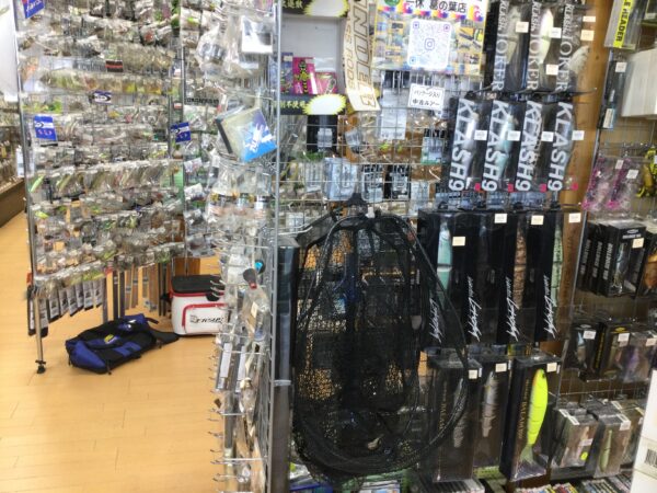タックルボックスとランディングネットが