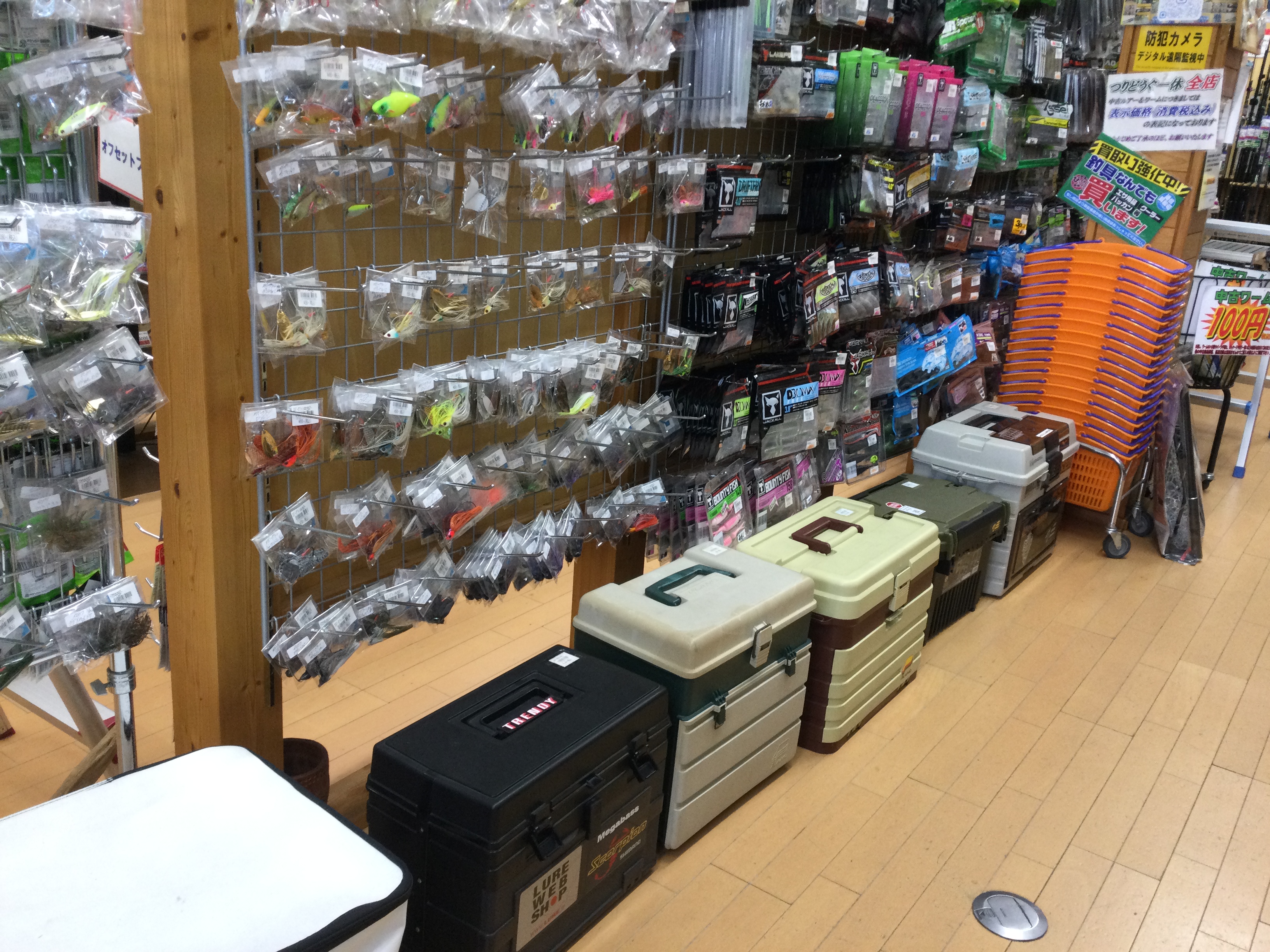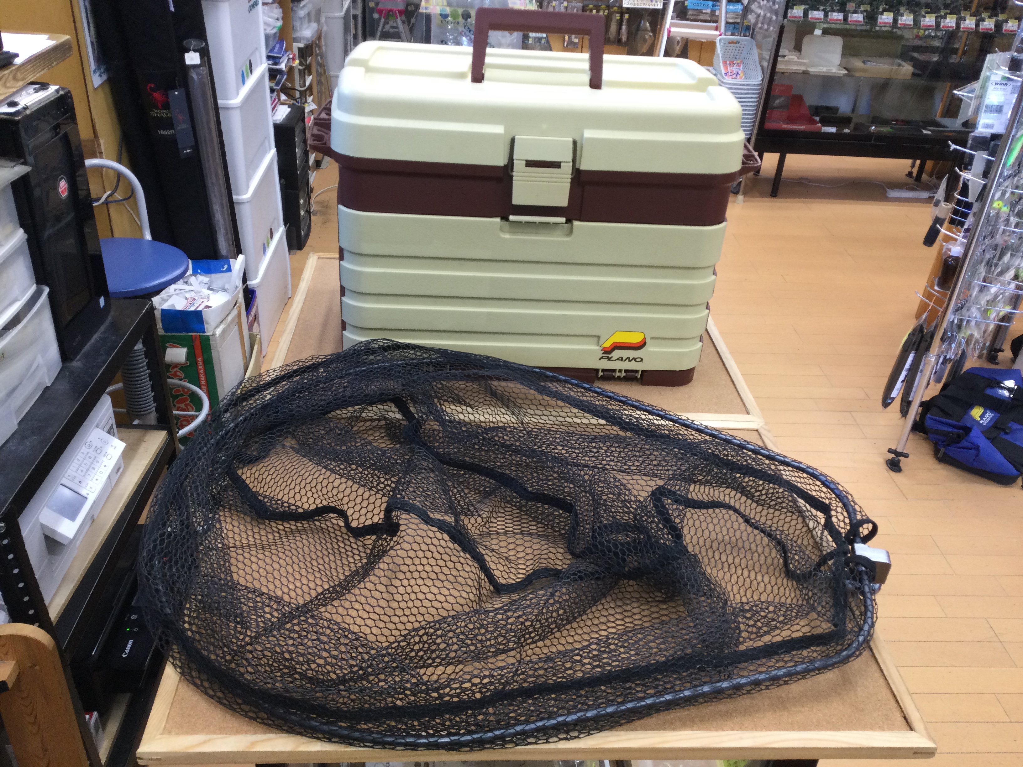 タックルボックスとランディングネットが