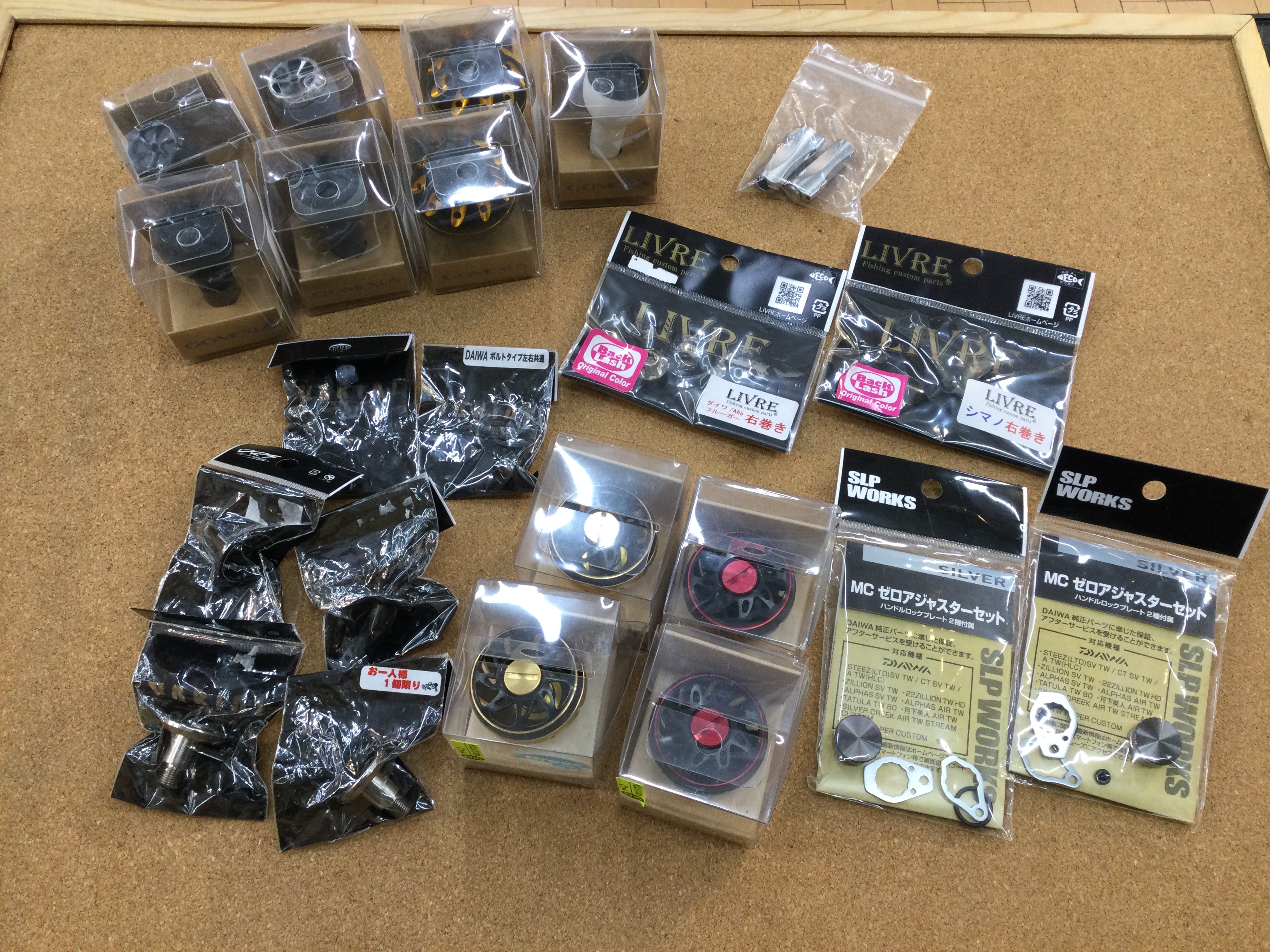 リール用カスタムパーツを多数お持ち頂きました。