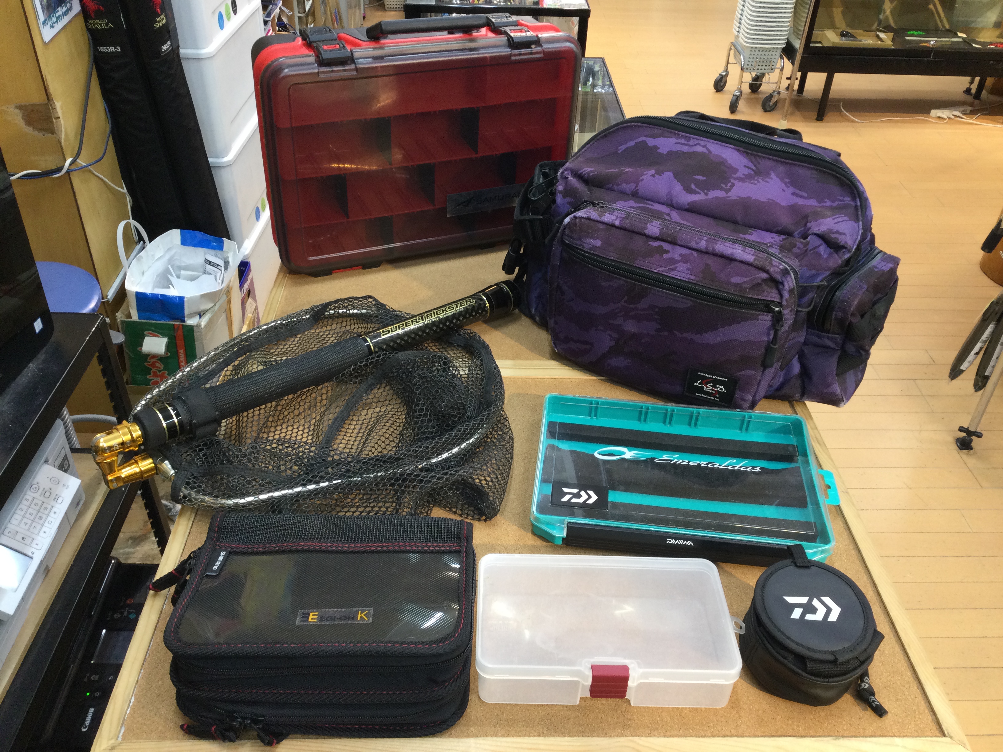 ランディングネットやヒップバッグなどの